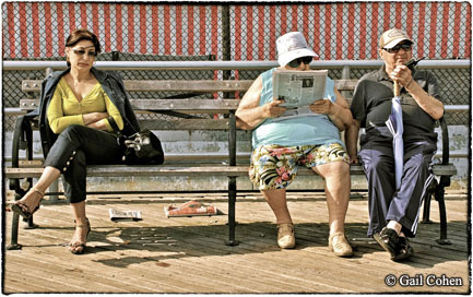 Without a plan of what will and will not be included, one thing leads to another, with the photographer making choices as places and events unfold. Relevance can be found throughout: the faces, social scenes, store windows, boardwalk benches and walls of graffiti.