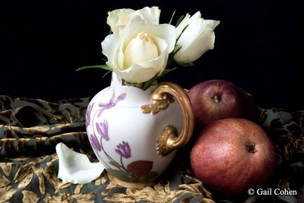 Still Lifes and Flowers are bodies of work begun in 2006, with a desire to display things commonly overlooked. The images are inspired by European Master Painters of the 17th century, in their use of natural light and its affect on color, texture and form. What better way to reflect on the nature of existence than to take time out to tune in to the beauty of a flower and to the stillness and serenity of still life arrangements.